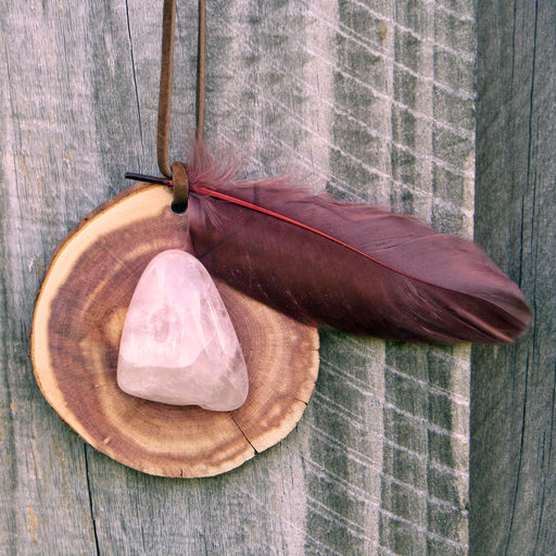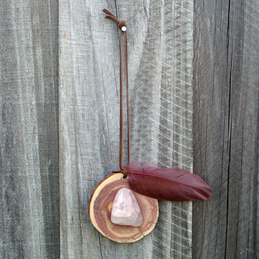 Boho Sapien Little Feather Rose Quartz Wall Charm